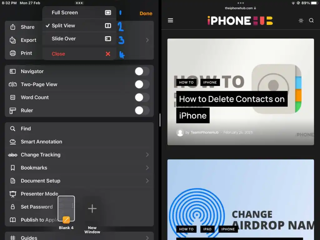 Note: This feature works on the latest iPadOS versions too. You can close one of the app and enjoy a split-free window.