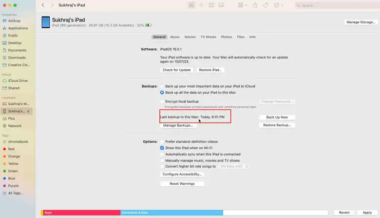Once the backup process is complete, it’s essential to verify its success. Navigate to the “General” tab within the iPhone overview in Finder. Under the “Backups” section, you should see the date and time of the most recent backup. This verification will provide reassurance that your iPhone data is securely backed up on your Mac.